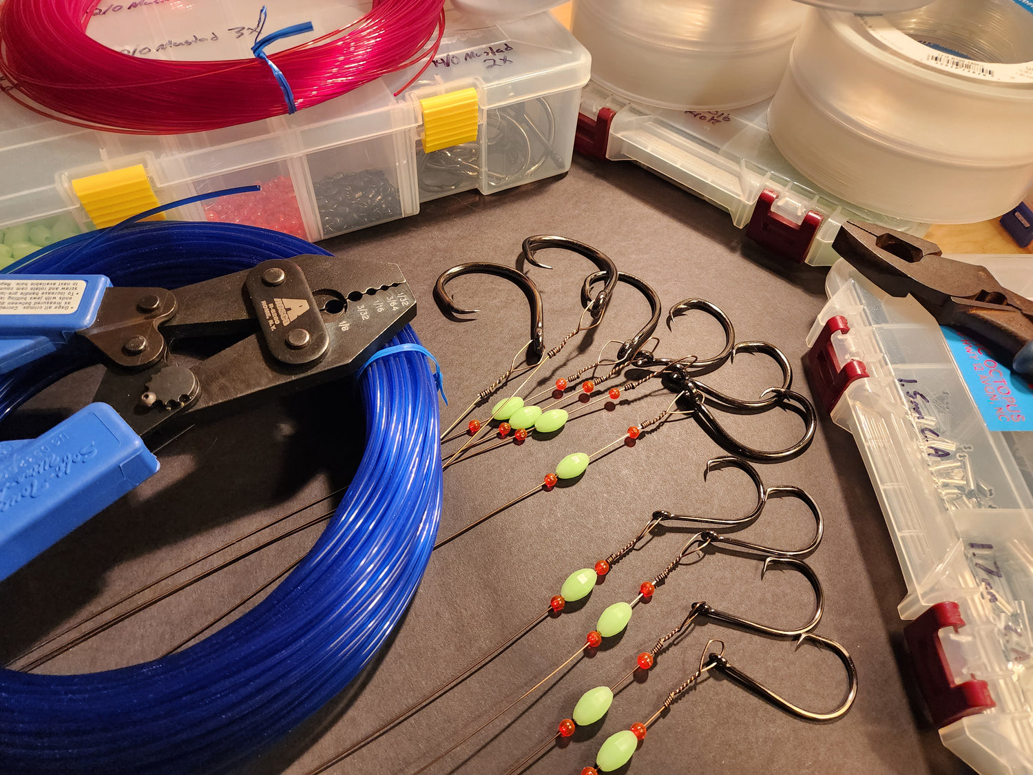Albatross rigs are hand-tied in Maryland and tested in the Outer Banks. They have been refined over time. Haywire twists are tied by hand, without the use of a haywire tool. All hooks on Albatross surf rigs are snelled, with exception of crimped rigs. Components are of high quality and assembled with an attention to detail.